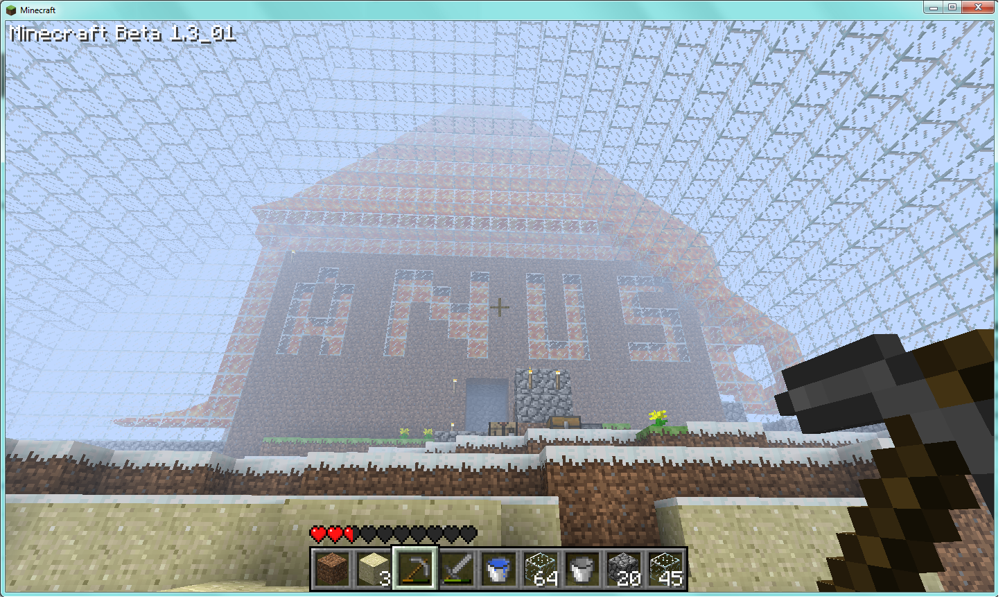 It looks like there is a thing that prevent non-admins from modifying blocks around the spawn point. I cant add/destroy anything within about a 10 block radius. Yet somehow I managed to make that dirt block in front of the "N" and then I couldn't remove it. Can Dime or Hogg please remove that block. Also, can you just make me admin.
