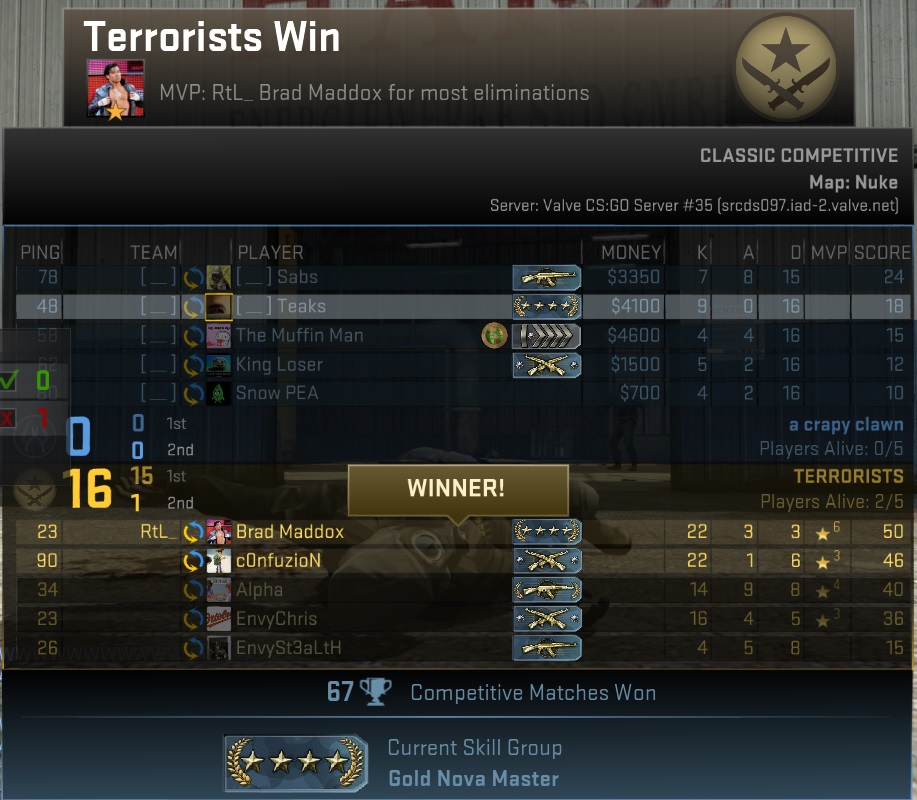 On a side note: I miss the lack of very defined stats we had with the HARD gaming servers. CS:GO has a small bit, but very lacking compared to what was provided there. Fucking Gabe. Give me cool shit to look at.